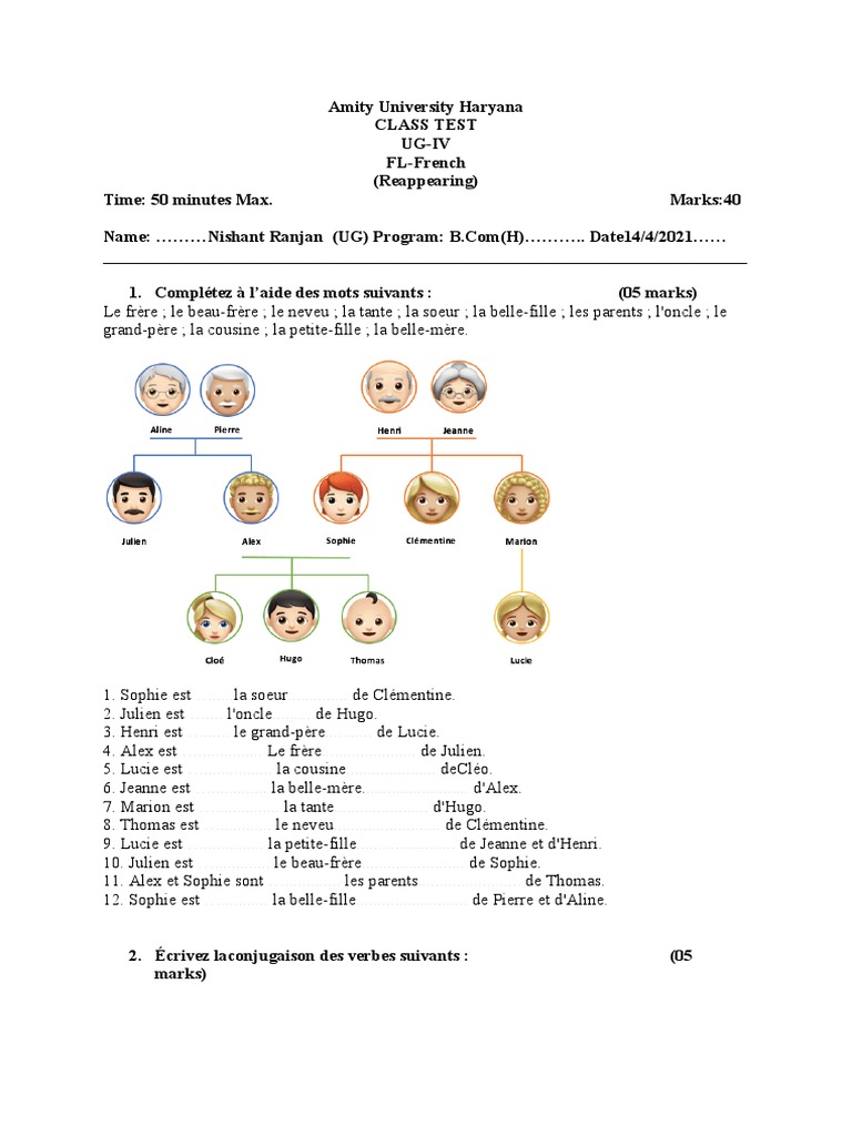 1. Sophie est ….....la soeur.............. de Clémentine.