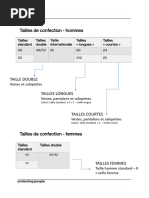 CORRESPONDANCE DES TAILLES Pour chaque type de vêtement, effectuez