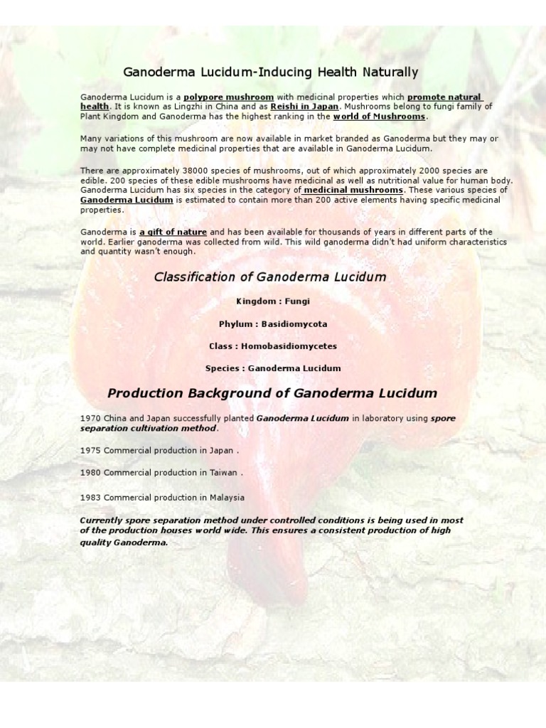 world. Earlier ganoderma was collected from wild. This wild ganoderma didn’t had uniform characteristics