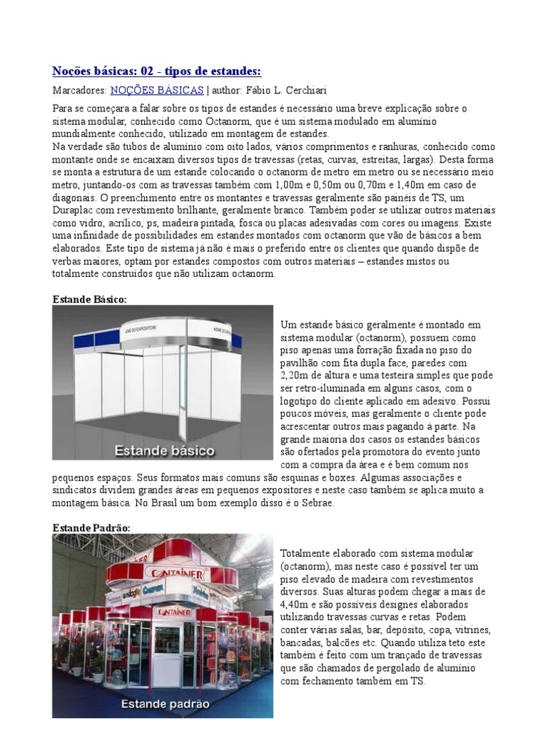podem se muito importantes. Como são as áreas em feiras? Como se classificam os estandes? O que