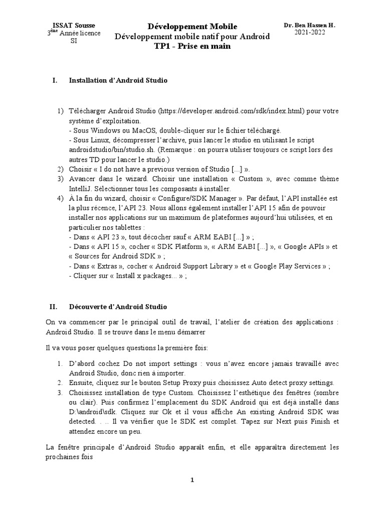 ISSAT Sousse Développement Mobile Dr. Ben Hassen H.