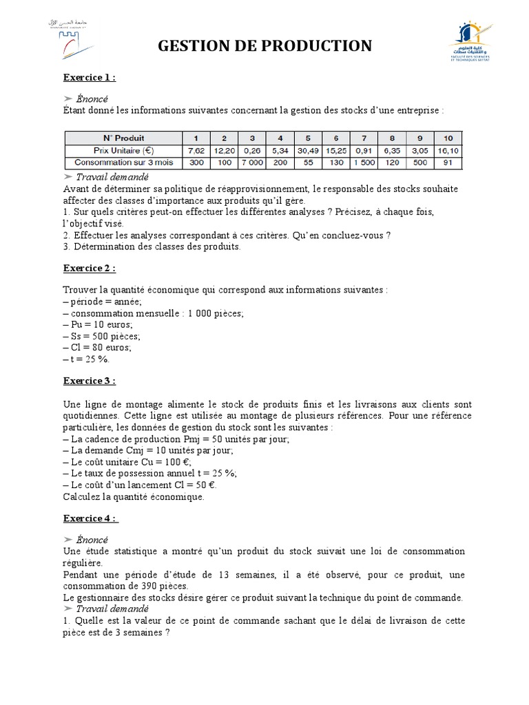 Étant donné les informations suivantes concernant la gestion des stocks d’une entreprise :