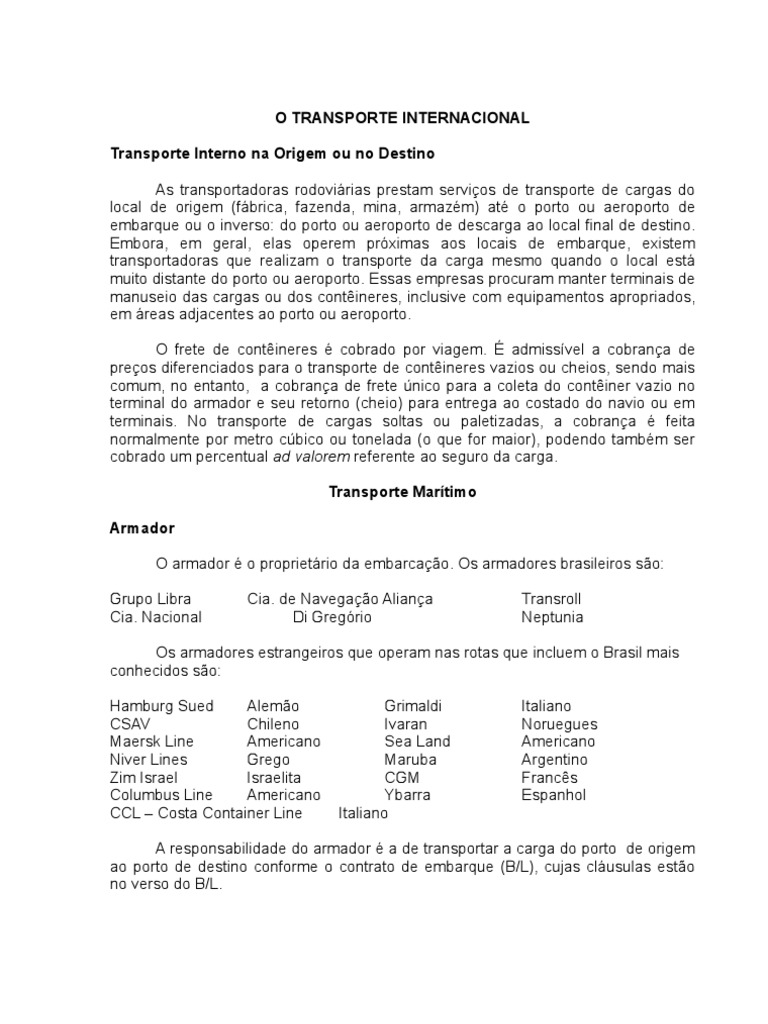 O TRANSPORTE INTERNACIONAL