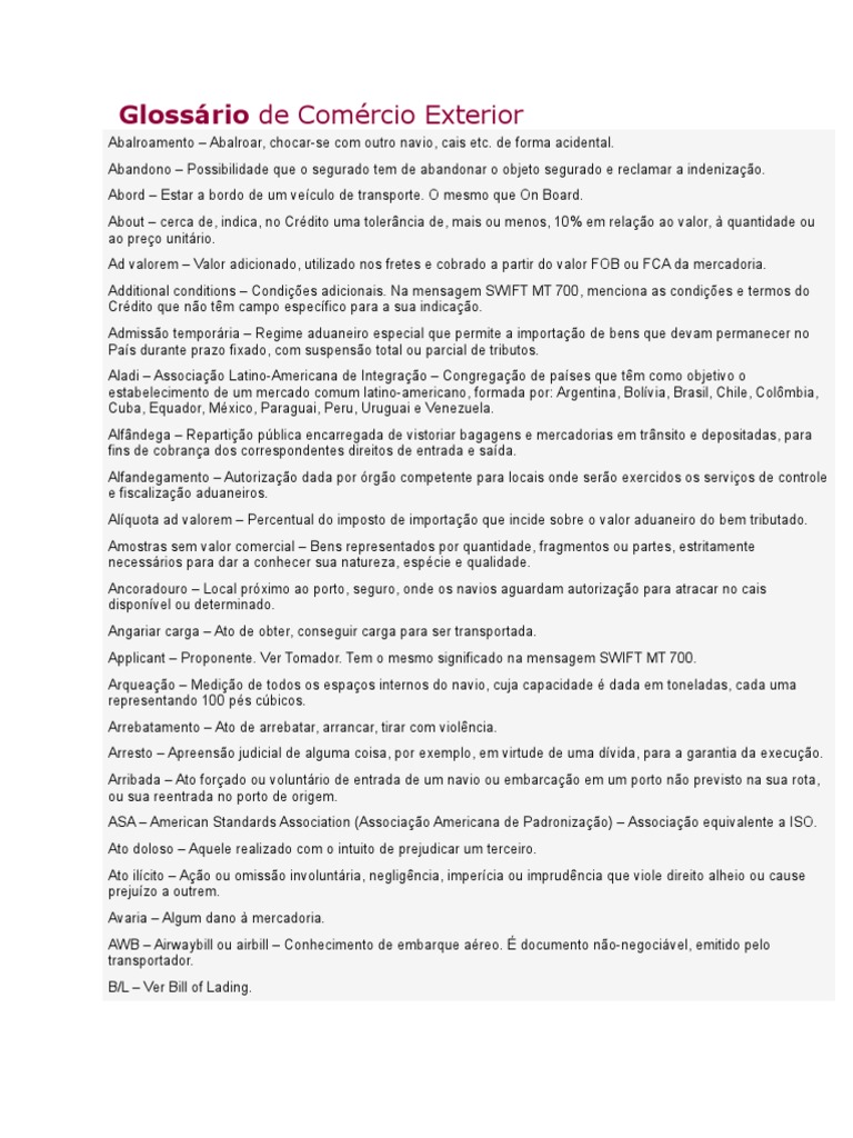 Ad valorem – Valor adicionado, utilizado nos fretes e cobrado a partir do valor FOB ou FCA da mercadoria.