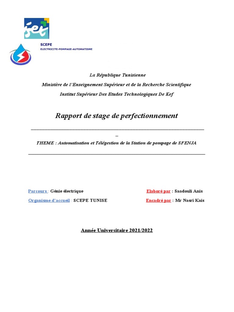 l'asservissement de la station de pompage SFENJA ainsi que la télégestion de cette dernière.