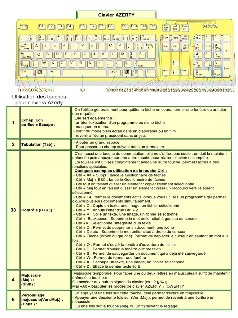 33 Contrôle (CTRL) : - Ctrl + Y : Annule l'effet d'un Ctrl + Z