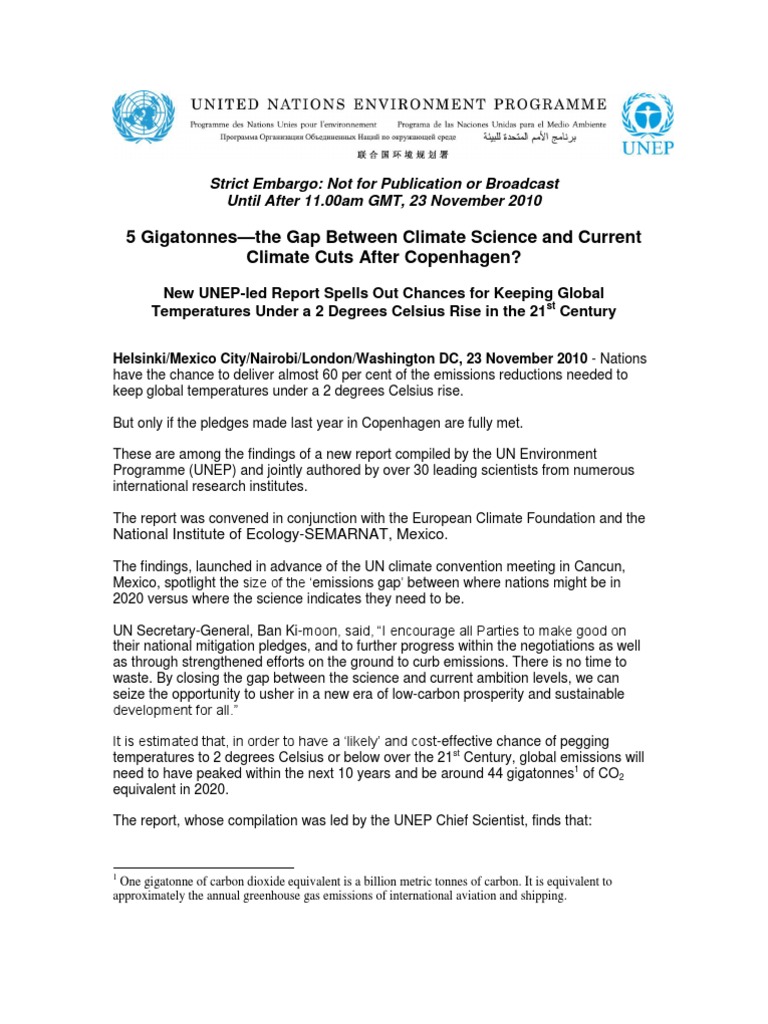A Summary of the Emissions Gap report will be available on www.unep.org