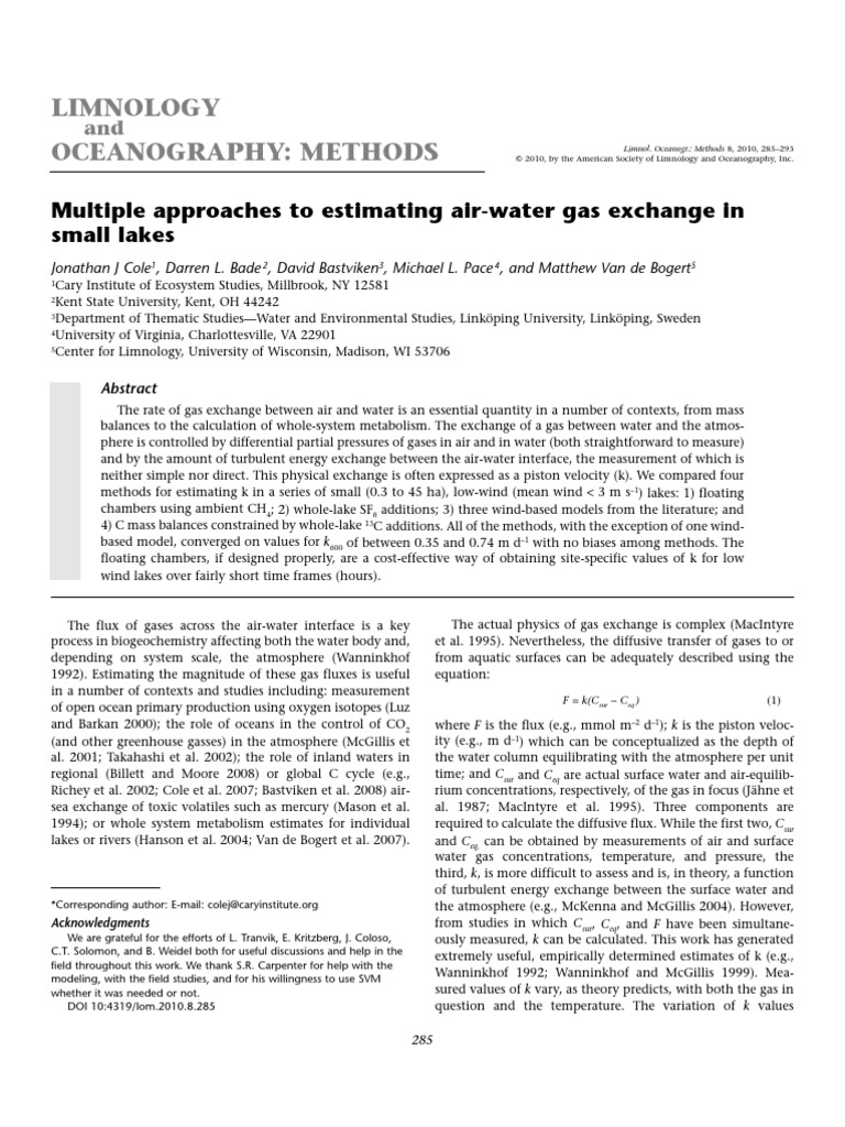 Oceans 106:16729-16745 [doi:10.1029/2000JC000506]. chamber measurements of gas exchange. Limnol. Oceaongr.