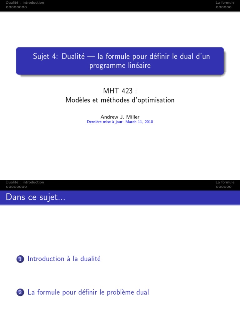 défini par celui-là. Ce programme linéaire-ci est le problème dual.