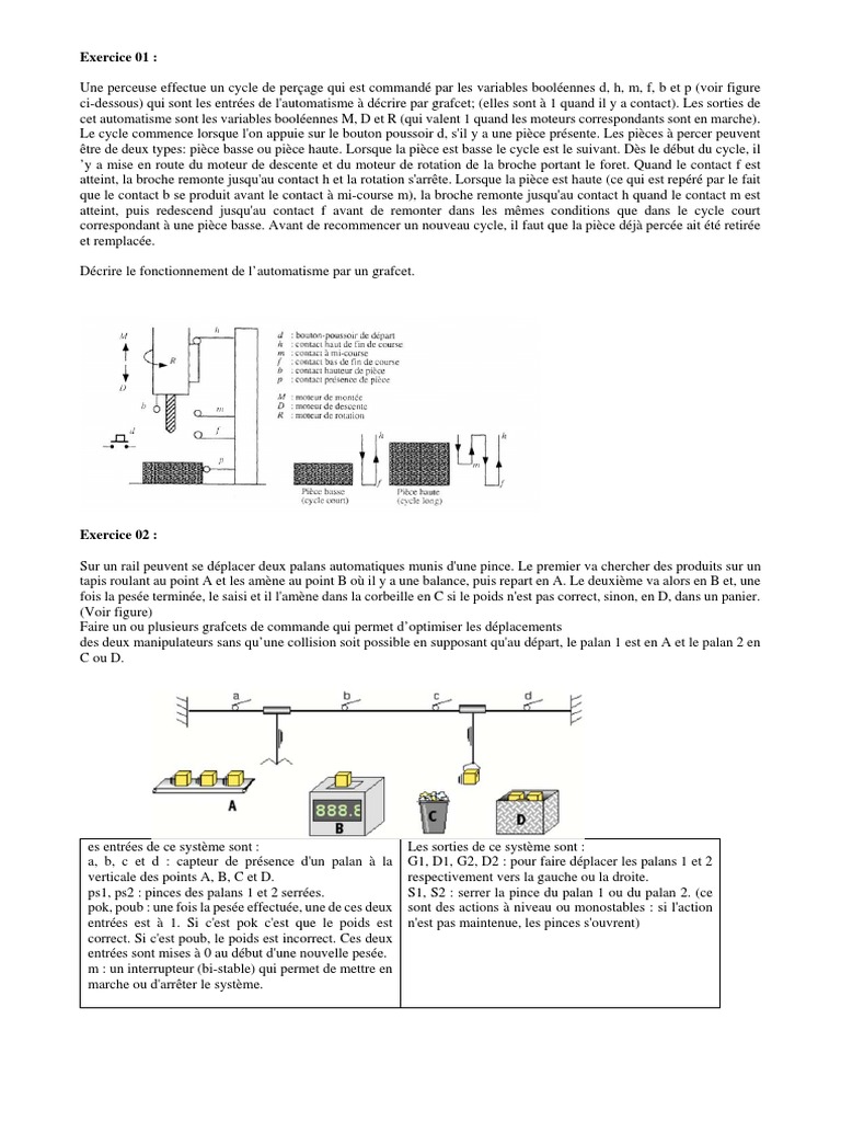 ci-dessous) qui sont les entrées de l'automatisme à décrire par grafcet; (elles sont à 1 quand il y a contact). Les sorties de