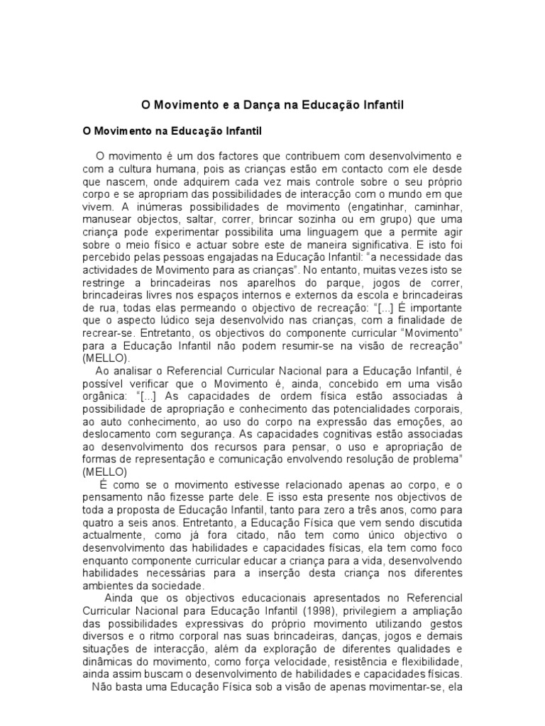 e apresentar uma proposta de inserção da dança como linguagem artística e