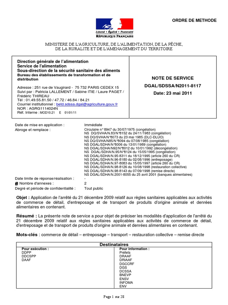 - Note d’information DGCCRF n° 2004-78 du 8 juin 2004 relative aux conditions de conservation
