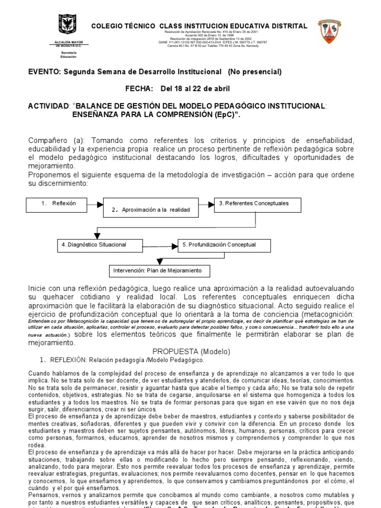 com y (tecnicoclass8@gmail. FECHA DE ENTREGA: 27 DE ABRIL DE 2011 FAVOR ENVIARLO VIRTUALMENTE A: coordinacionacademica33@gmail. COLEGIO TÉCNICO CLASS INSTITUCION EDUCATIVA DISTRITAL Resolución de Aprobación Renovada No. Equipo de GestiónColegio Técnico Class IED . Kennedy Secretaría Caracterización Educación de la intervención (qué hacer y para qué). 090787 DE BOGOTÁ D. 090779 J.com) Cordialmente.C.M. Indicadores de resultados (Metas específicas a alcanzar) Acciones y estrategias a desarrollar (cómo se implementará la intervención) Factores facilitadores para éxito de la intervención (condiciones para su ejecución) NOTA: En caso de que usted no esté implementando el modelo pedagógico institucional (EpC) (Enseñanza para la Comprensión) desarrolle el ejercicio anterior con su propuesta pedagógica ejecutada. Carrera 80 I No. aportando las evidencias que muestren dicho proceso. 57 B 50 sur Telefax 776 49 43 Zona 8a. 415 de Enero 30 de 2001 Acuerdo 002 de Enero 12 de 1996 Resolución de Integración 2818 de Septiembre 13 de 2002 ALCALDÍA MAYOR DANE 111-001-13122 NIT 830-022-413-DV4 ICFES J.T.
