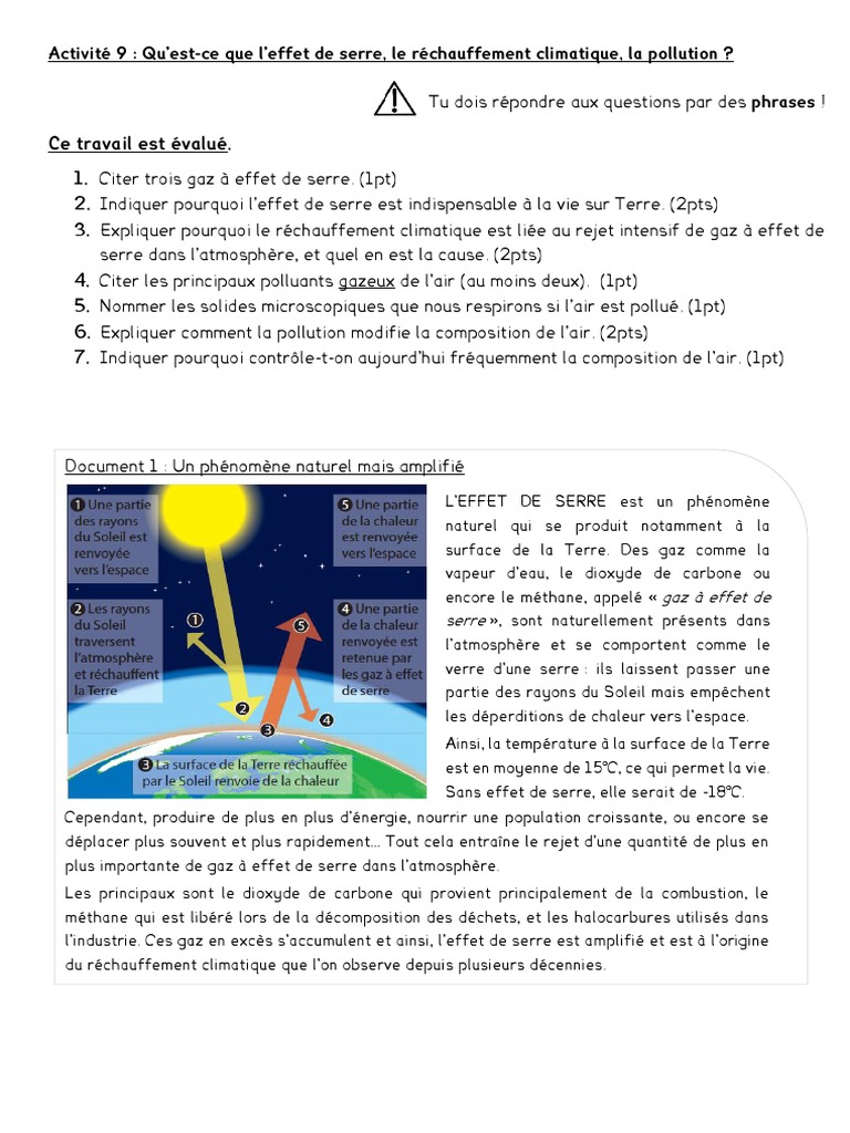 Activité 9 : Qu’est-ce que l’effet de serre, le réchauffement climatique, la pollution ?