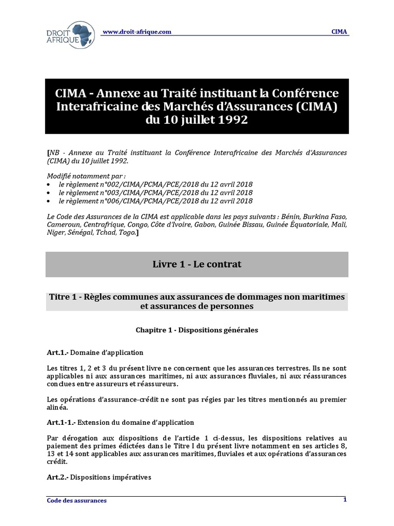 HTTPWWW - Droit Afrique - comuploadsCIMA Code Assurances PDF