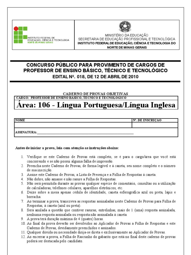 10. Ao final da prova deverão ser devolvidos ao Aplicador de Provas a Folha de Respostas e este