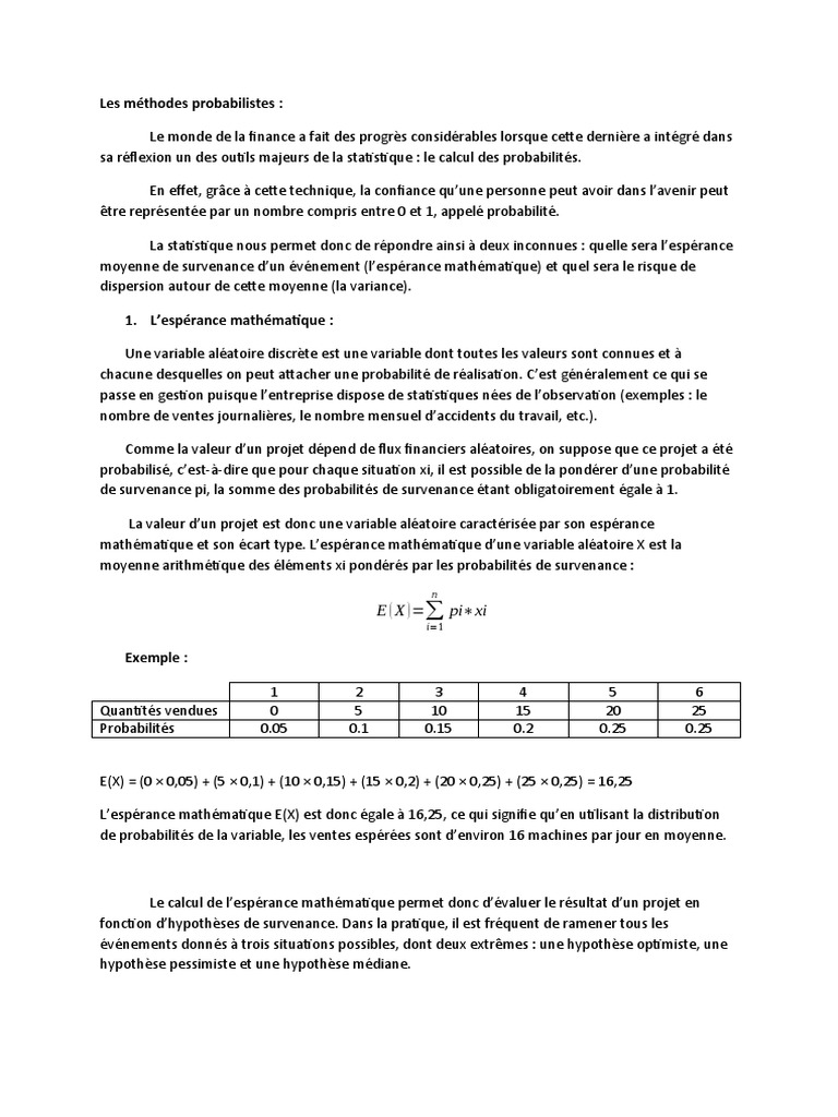 Les méthodes probabilistes