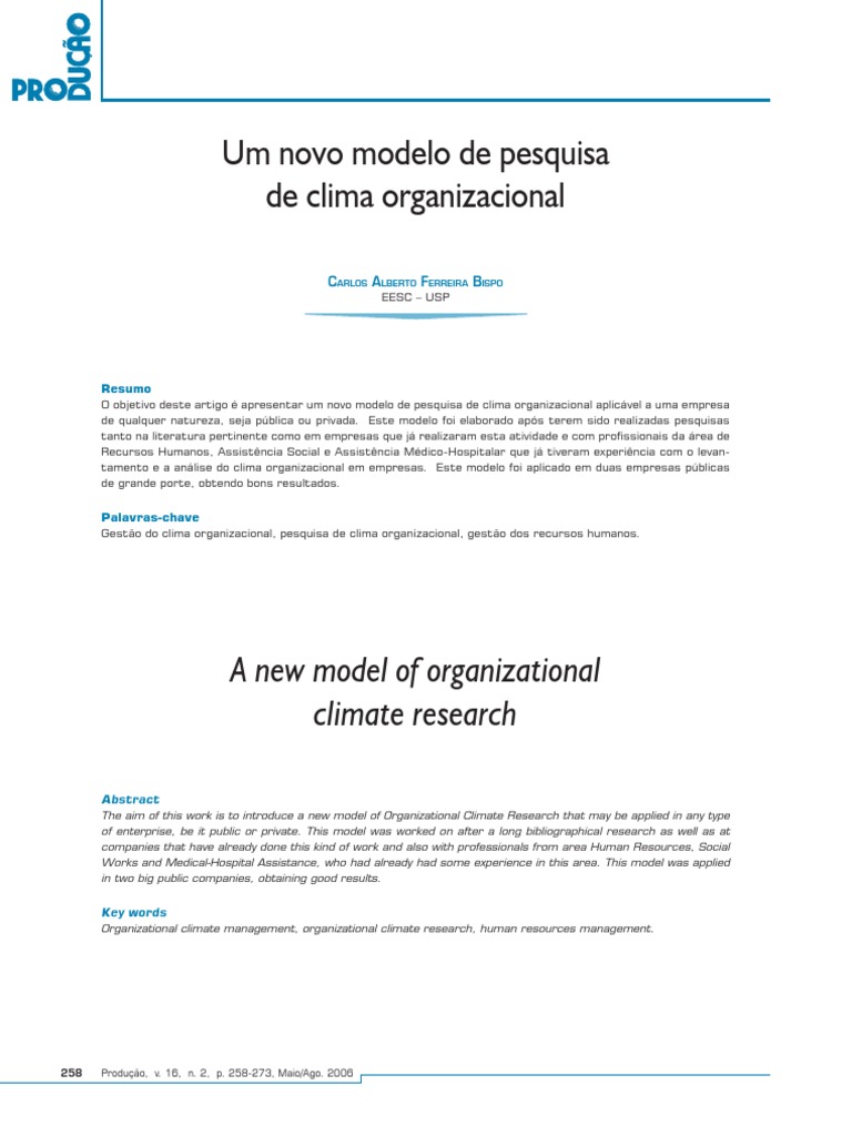 O objetivo deste artigo é apresentar um novo modelo de pesquisa de clima organizacional aplicável a uma empresa