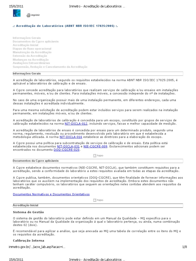 .: Acr e ditação de Labor atór ios (ABNT NBR ISO/IEC 17025:2005) :.