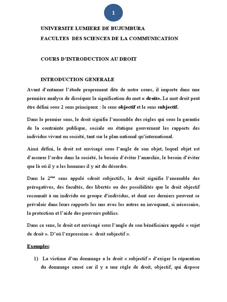 COURS D’INTRODUCTION AU DROIT