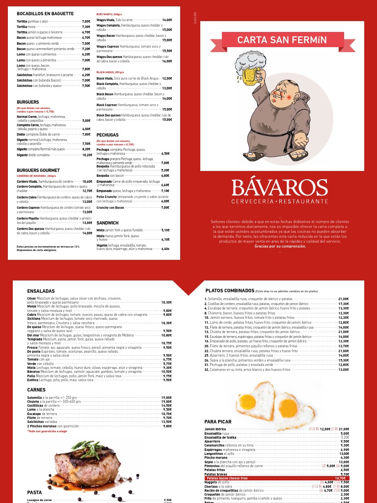 y cebolla · · · · · · · · · · · · · · · · · · · · · · · · · · · · · · · · · · · · · · 13,00€ con lechuga y mahonesa) · · · · · · · · · · · · · · · · · · · · 6,00€