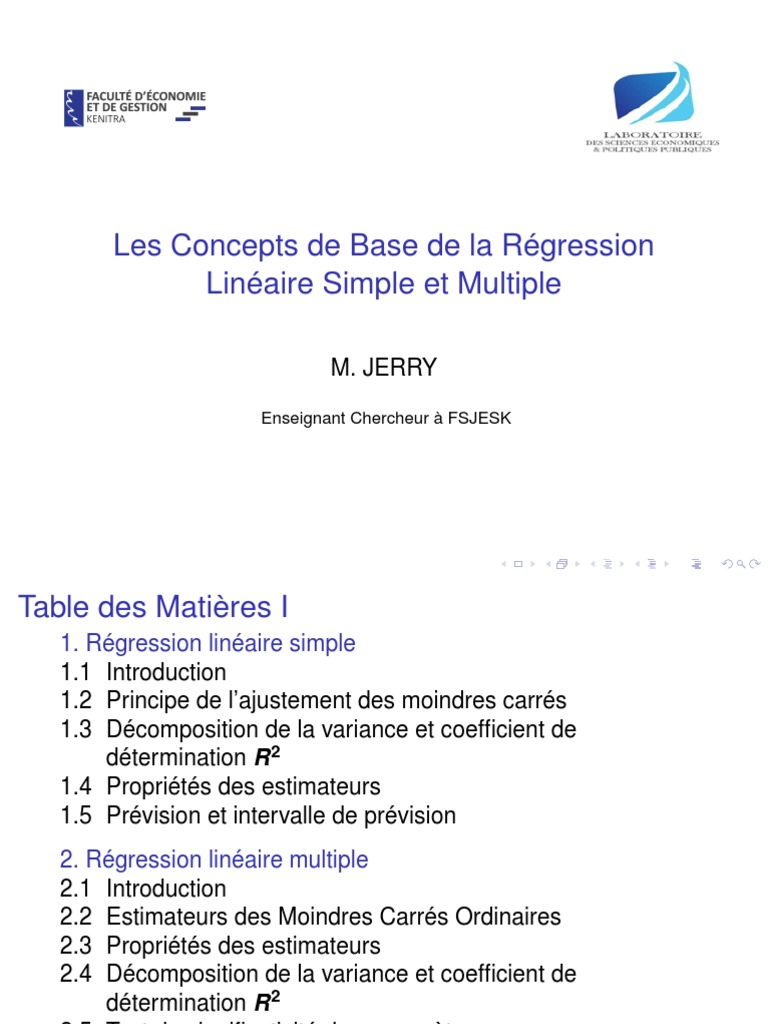 2.2 Estimateurs des Moindres Carrés Ordinaires