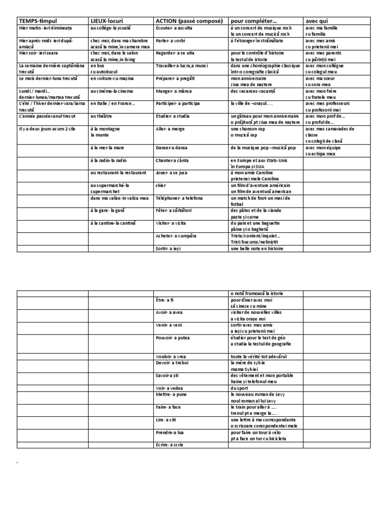 TEMPS-timpul LIEUX-locuri ACTION (passé composé) pour compléter… avec qui