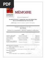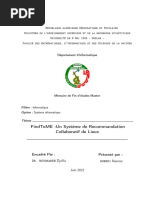 recommandation est un outil de recherche d'information et de filtrage qui vise à proposer aux