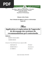 techniques regroupent les utilisateurs ou les items en clusters offrant ainsi une nouvelle façon
