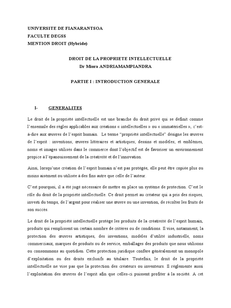 DROIT DE LA PROPRIETE INTELLECTUELLE