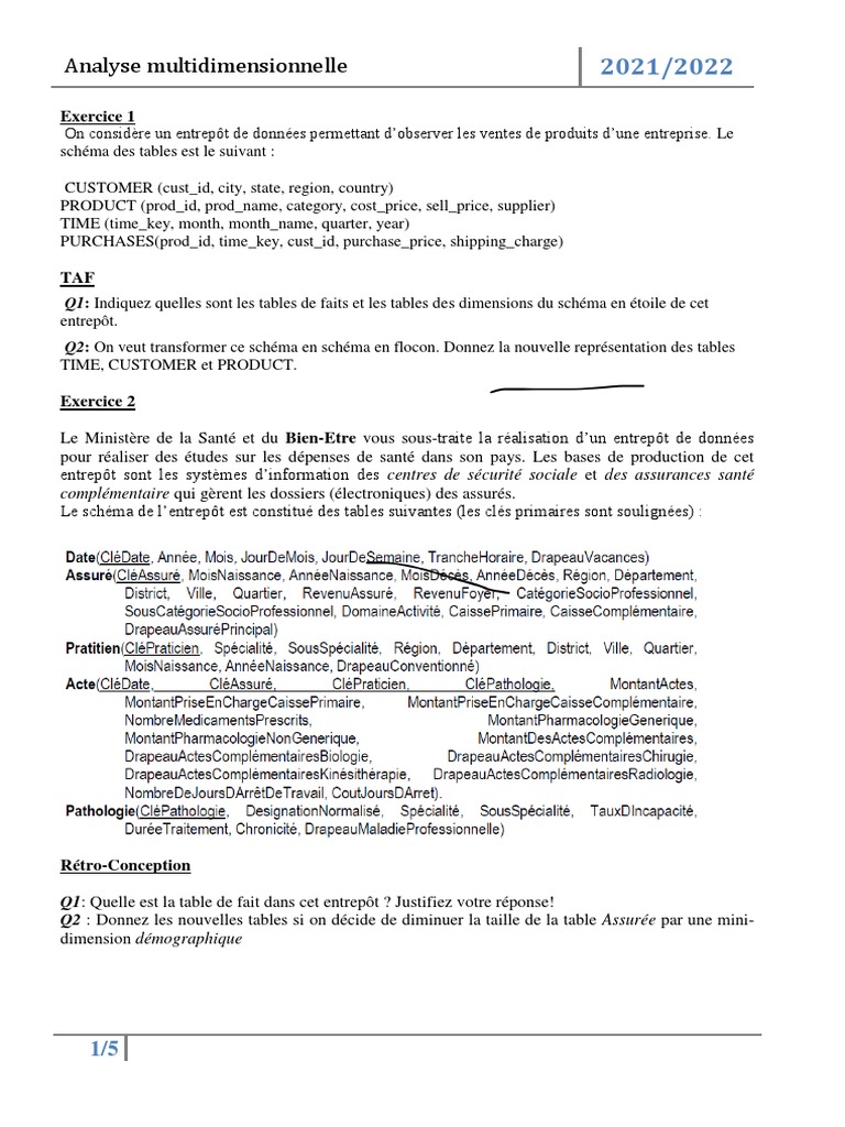 Q1: Indiquez quelles sont les tables de faits et les tables des dimensions du schéma en étoile de cet