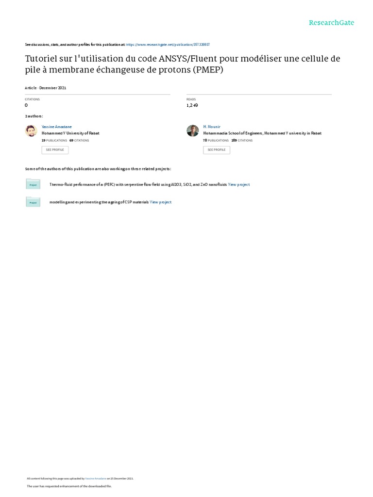 Tutoriel sur l'utilisation du code ANSYS/Fluent pour modéliser une cellule de