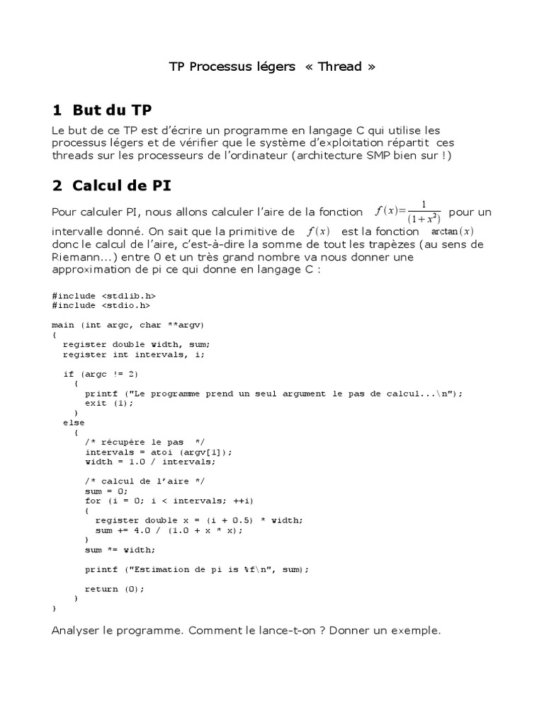 Le but de ce TP est d’écrire un programme en langage C qui utilise les