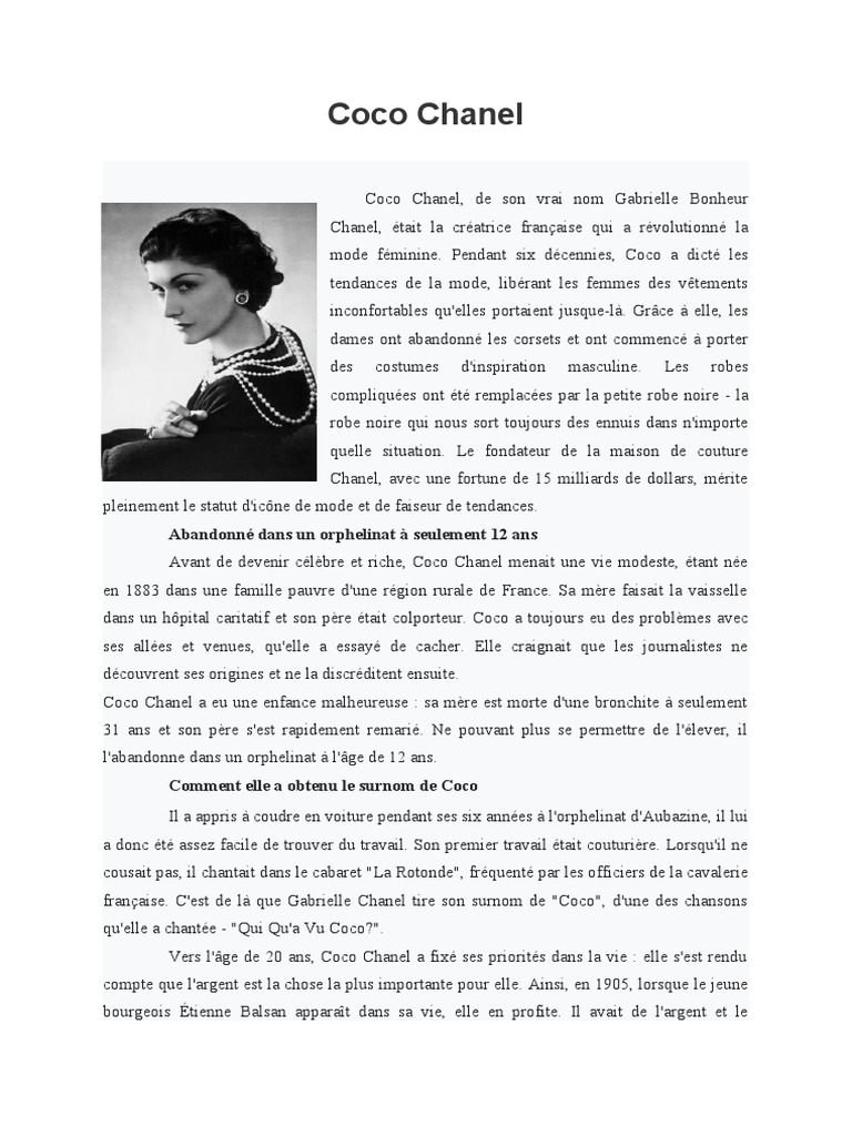 Coco Chanel est rapidement devenu un nom dans la mode française. Il a créé un