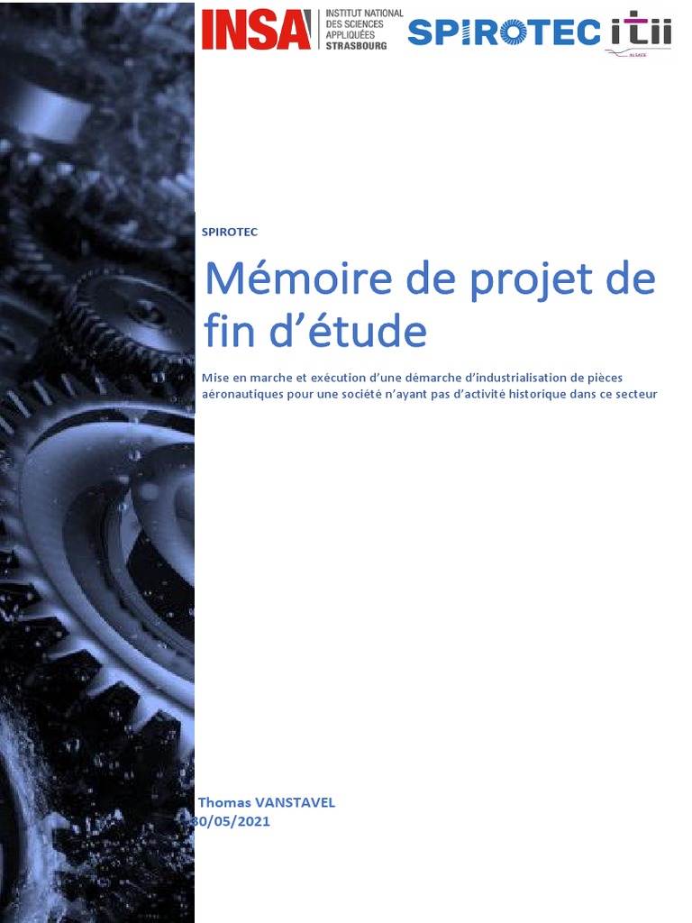 Mise en marche et exécution d’une démarche d’industrialisation de pièces
