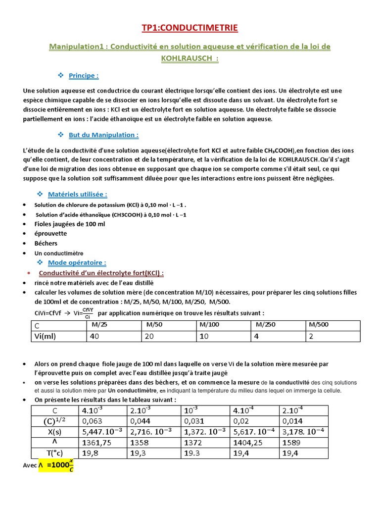 qu’elle contient, de leur concentration et de la température, et la vérification de la loi de [Link]’il s'agit