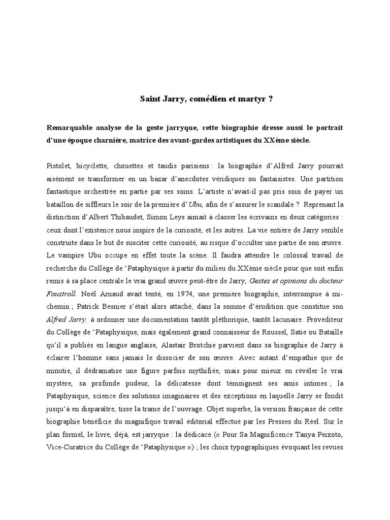 Remarquable analyse de la geste jarryque, cette biographie dresse aussi le portrait
