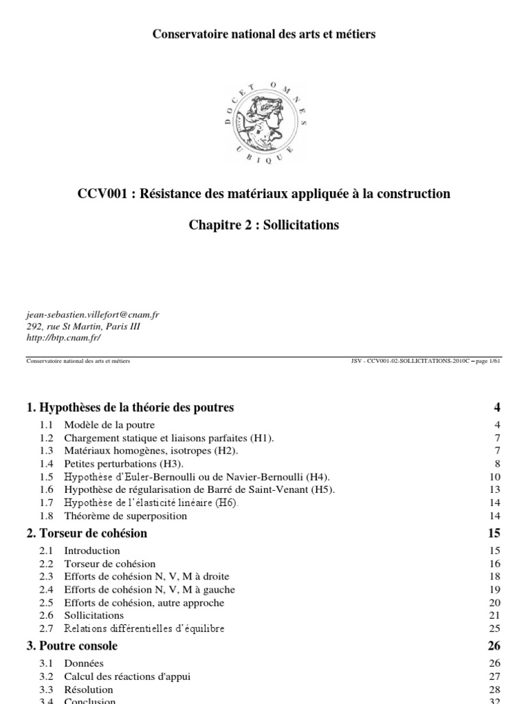 contraintes ne dépend que de la résultante des efforts et des moments extérieurs.