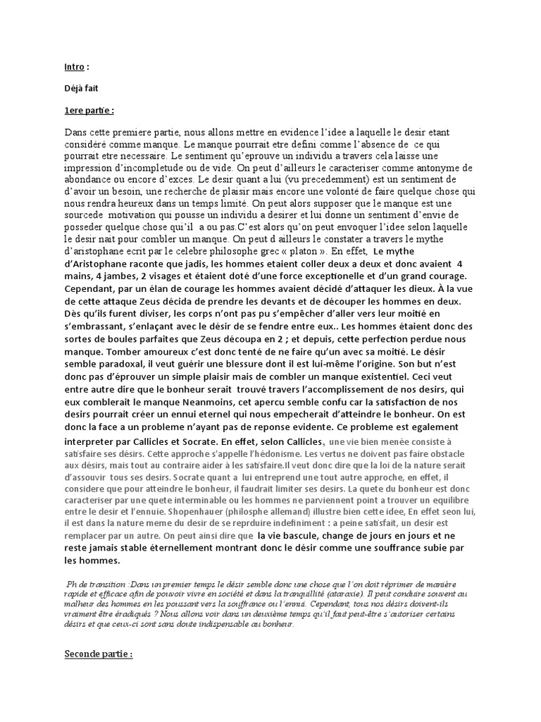 abondance ou encore d’exces. Le desir quant a lui (vu precedemment) est un sentiment de