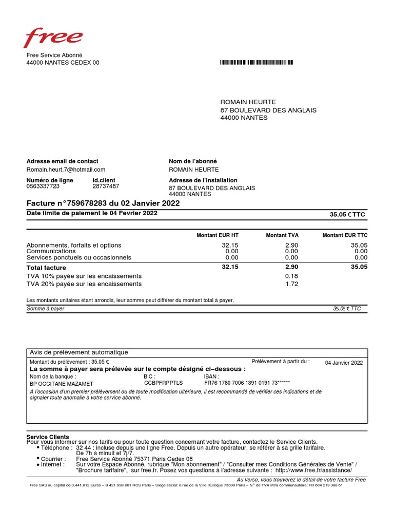 Au verso, vous trouverez le détail de votre facture Free