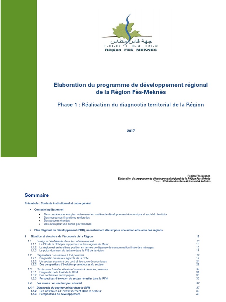 Elaboration du programme de développement régional de la Région Fès-Meknès