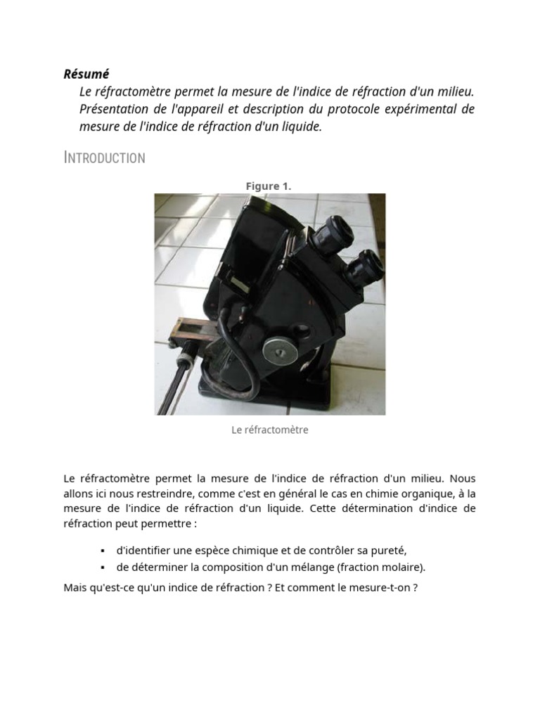 Le réfractomètre permet la mesure de l'indice de réfraction d'un milieu. Nous