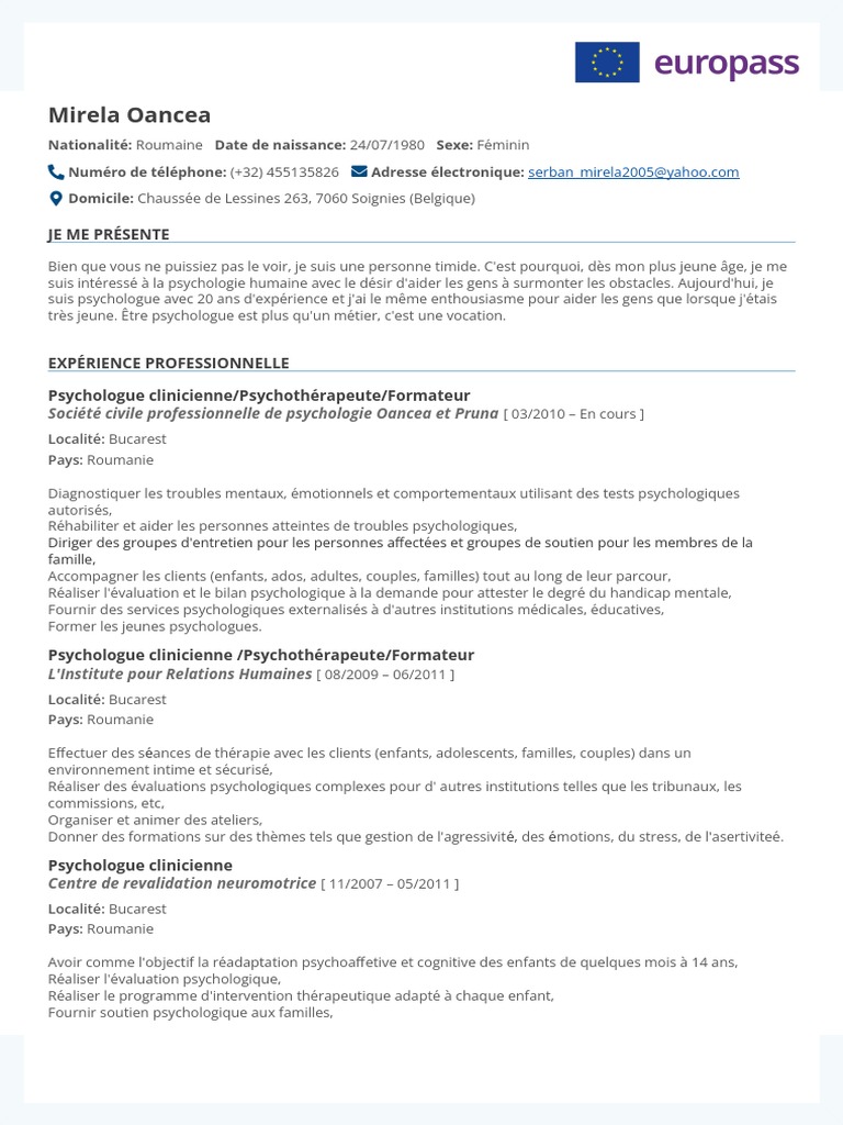 Numéro de téléphone: (+32) 455135826 Adresse électronique: serban_mirela2005@[Link]