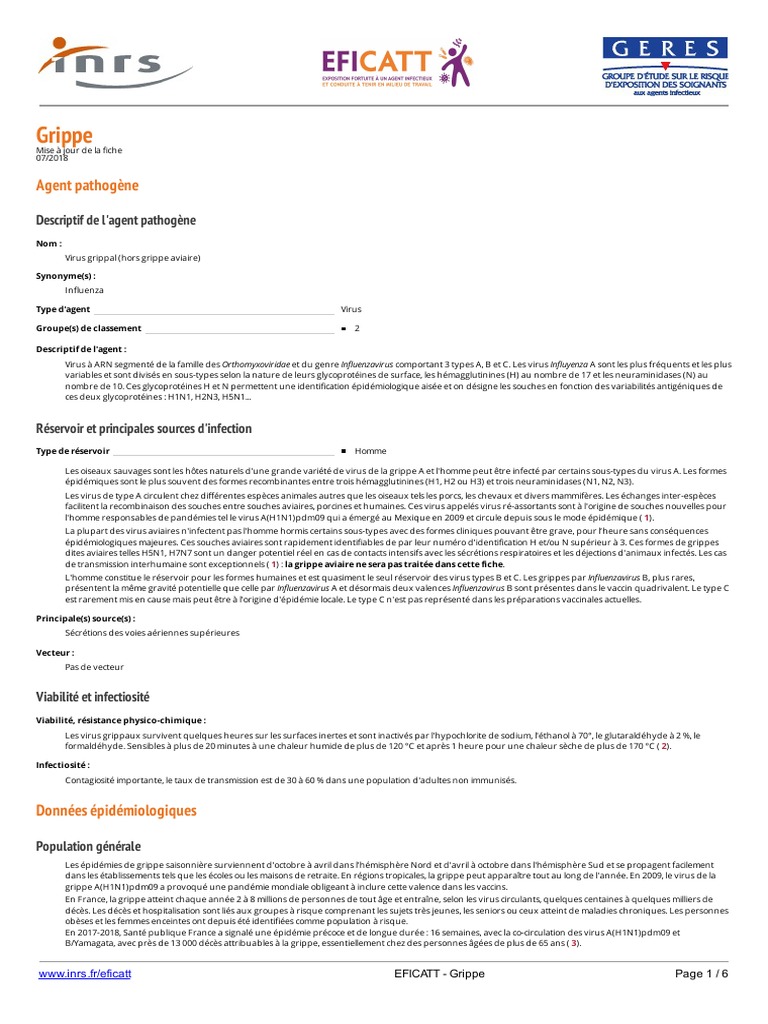 www.inrs.fr/eficatt EFICATT - Grippe Page 1 / 6