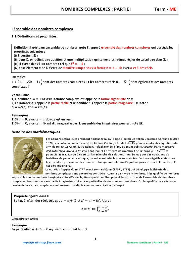 NOMBRES COMPLEXES : PARTIE I Term - ME