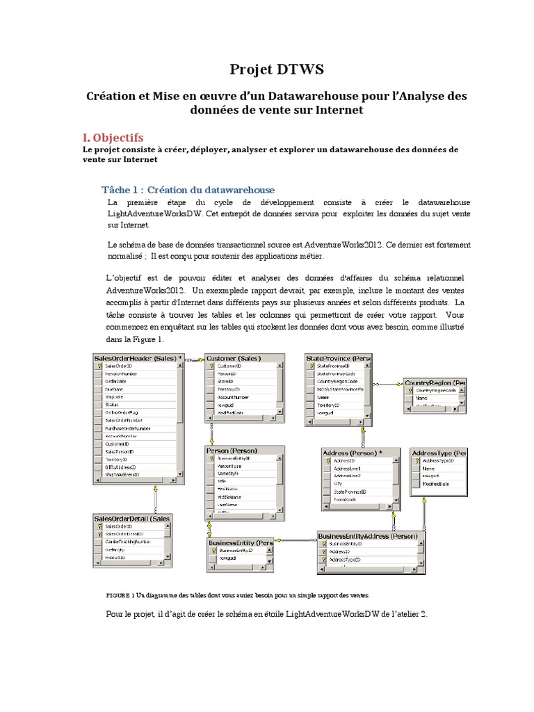 Pour le projet, il d’agit de créer le schéma en étoile LightAdventureWorksDW de l’atelier 2.