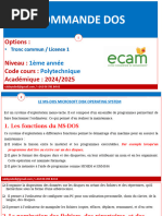 Certaines commandes ne fonctionnent quen mode DOS appel maintenant mode invite de commande Il est toujours ncessaire de savoir se servir dune interface texte encore employ par certains programmes : - FDISK, FORMAT pour la partition et le formatage des disques, - PING, IPCONFIG, ARP, NET pour la configuration dun rseau - ou dans dautres environnements tels que Linux en mode terminal Ces commandes reprennent les principaux appels systme qui concernent les fichiers. Cest donc une bonne approche pour comprendre le rle du systme dexploitation. En cas de gros problmes elles permettent parfois de se dpanner avec un PC qui n'a pu dmarrer qu' partir d'une disquette. Ces commandes sont essentielles pour faire des fichiers de commandes .bat ou .cmd