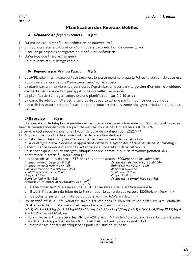 Planification des Réseaux Mobiles