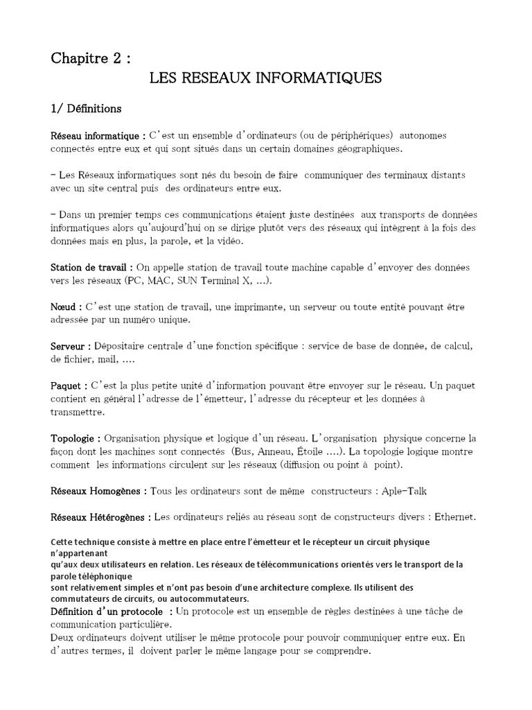 - Les Réseaux informatiques sont nés du besoin de faire communiquer des terminaux distants