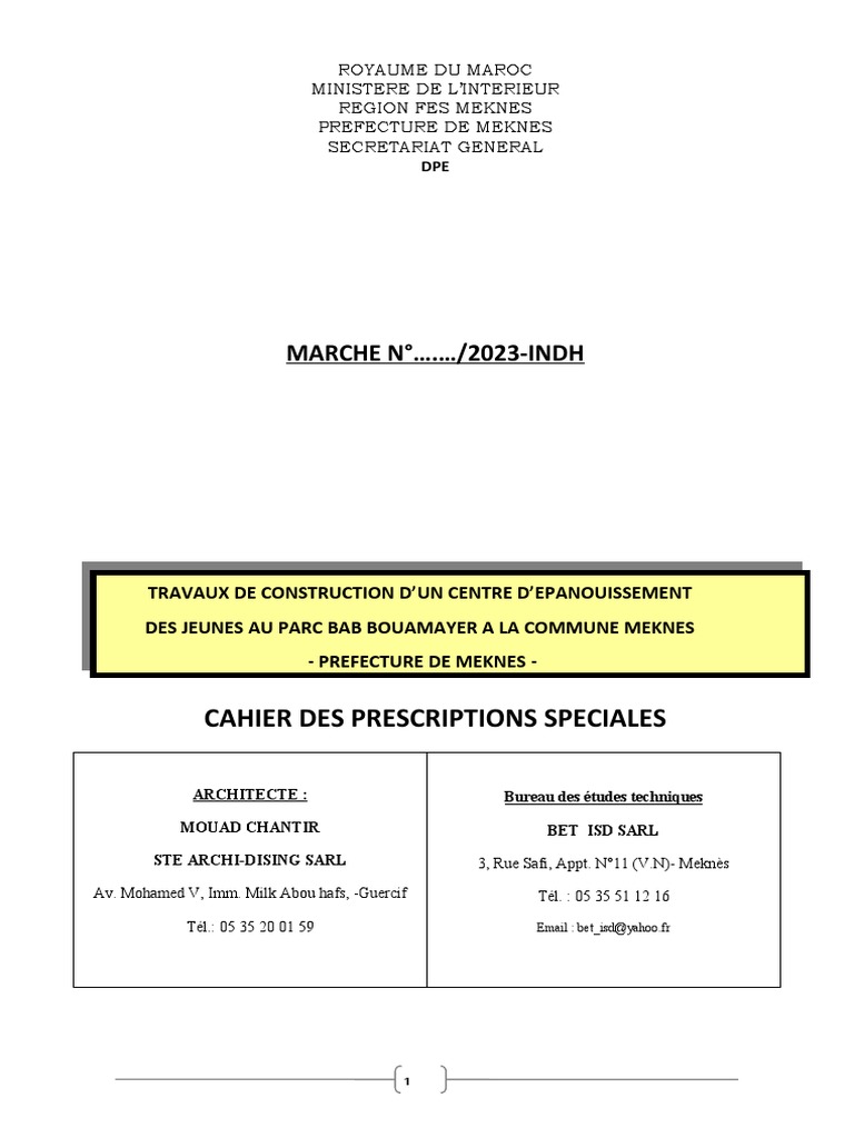 Le présent marché a pour objet la réalisation des travaux de : TRAVAUX DE CONSTRUCTION D’UN